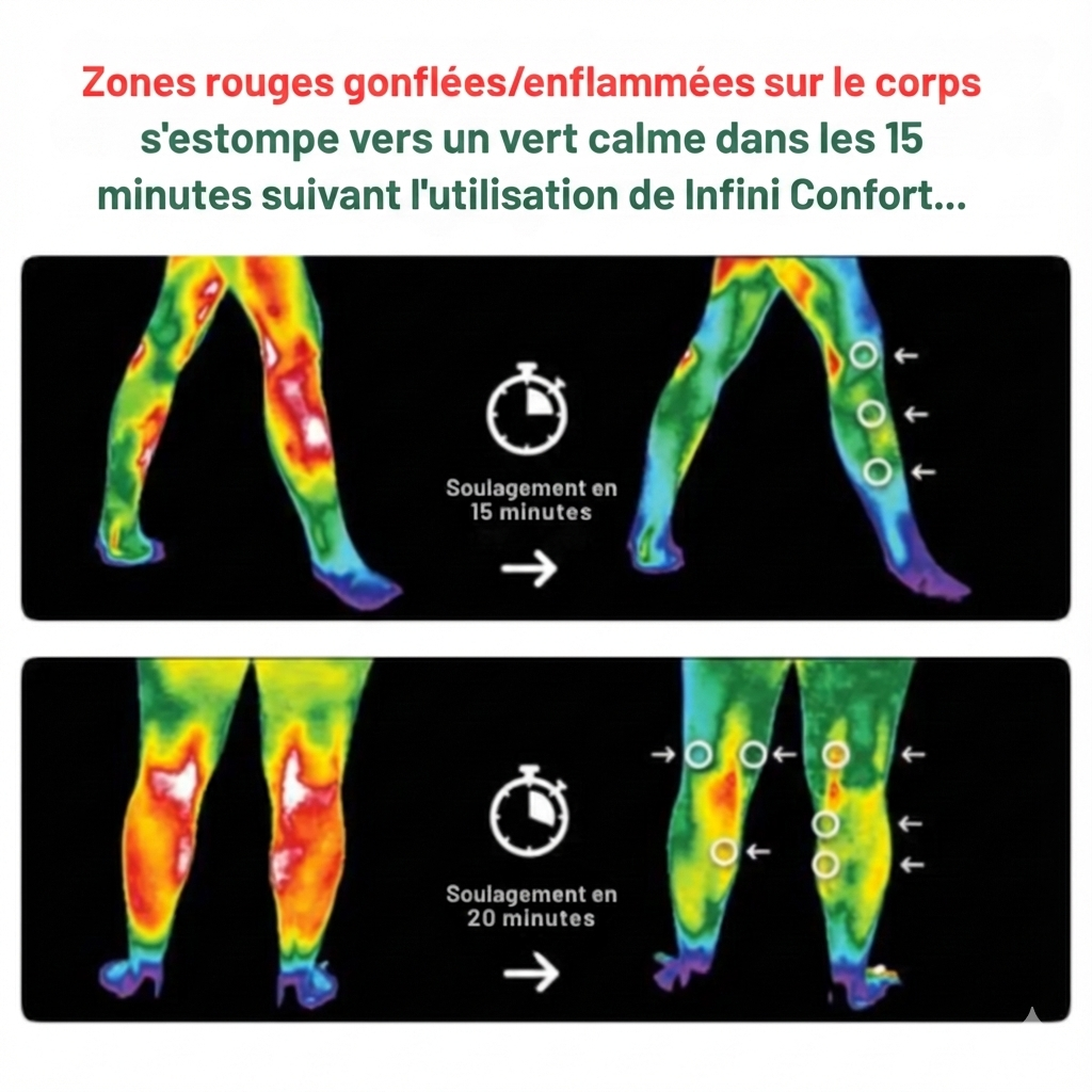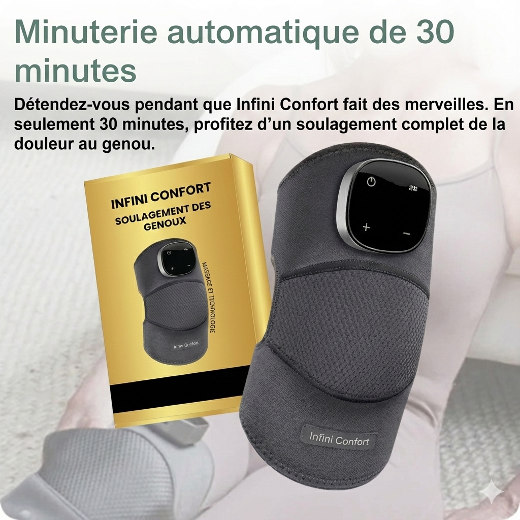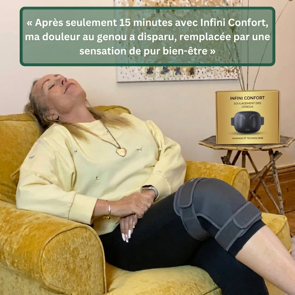 Ne choisissez plus entre un coussin chauffant et un massage. InfiniConfort™ crée une synergie biologique unique : il prépare, détend et répare votre genou simultanément pour un résultat qu'aucune méthode seule ne peut atteindre.